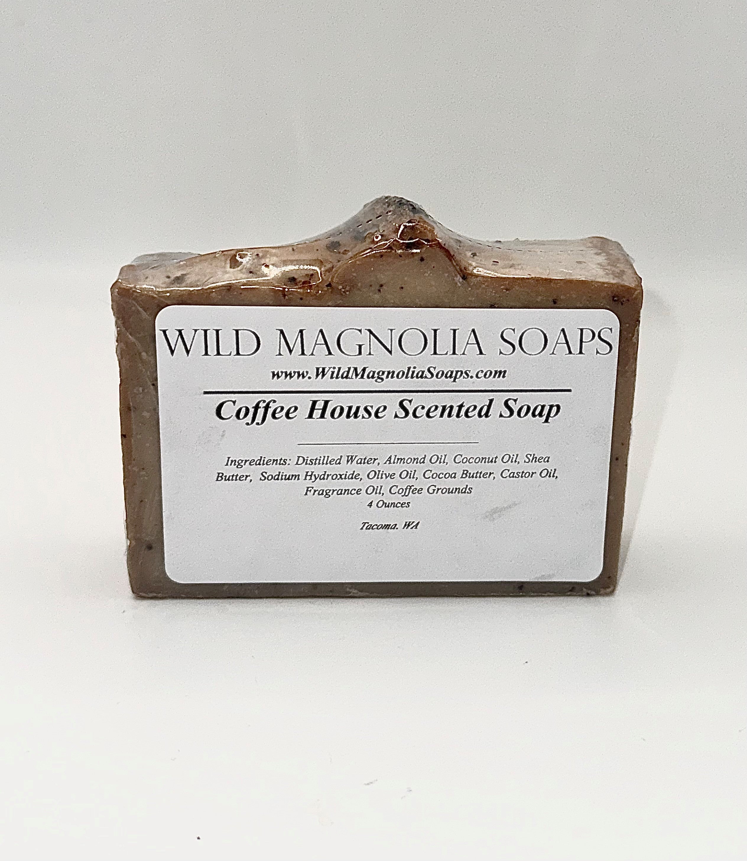Ingredients: Distilled Water, Almond Oil, Coconut Oil, Shea Butter, Sodium Hydroxide, Olive Oil, Cocoa Butter, Castor Oil, Fragrance, Coffee Grounds, Sugar